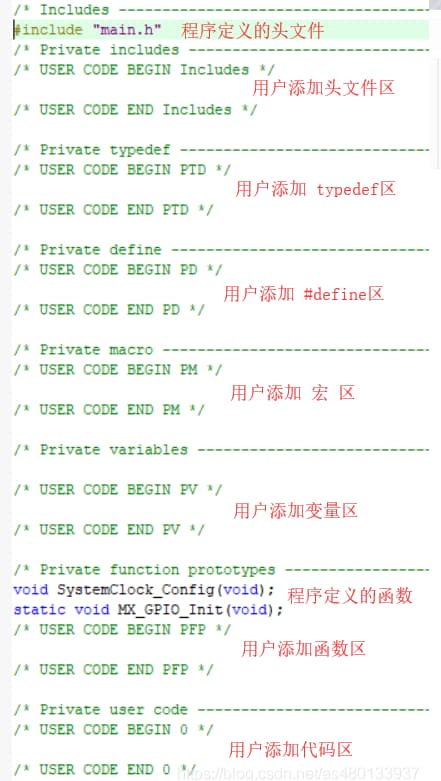 用户自己编写的代码注意写在区域里,不然重新生成 CubeMX 会没了